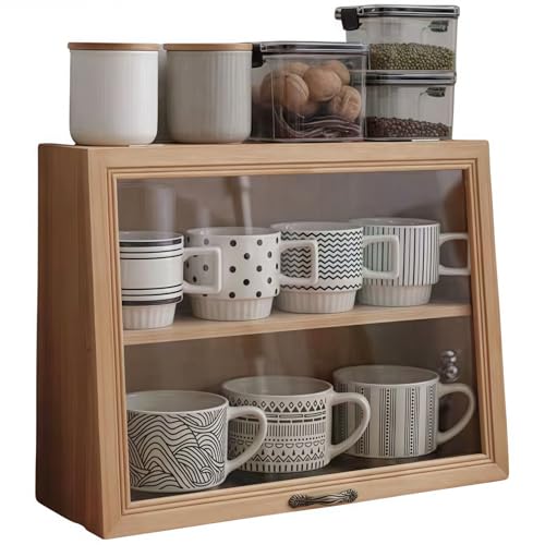 QAMITAL 木製ヴィンテージデスクトップキャビネット ダブルシェルフ 蓋付き 収納ボックス フィギュア/マグカップ/ティーセット/化粧品用 ナチュラルアンティーク (ブラウン L) (Small,ナチュラル)
