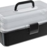 DRWGの段ボール式折りたたみ工具収納ボックスは、大容量の透明プラスチック製で取っ手付き。DIYや家庭用小物整理に最適な多機能収納ケースです。サイズは小型で、色はブラック。