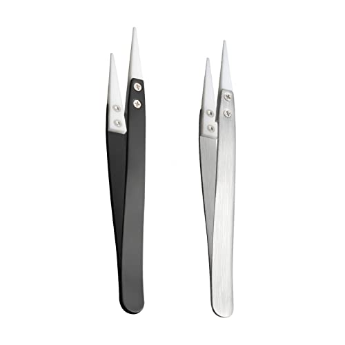 KJOET 精密ピンセット ピンセット セラミック はんだ付け 工具 電子工作 精密機械 静電気 防止 プラモデル 模型 耐熱 非磁性 2本の高価買取