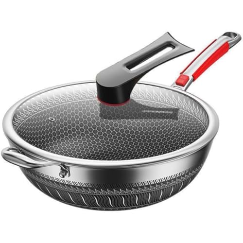 WhiteForestの深型ステンレスフライパン。厚型設計で油煙が少なく、中華鍋としても使用可能。ガラス蓋付きで多用途に対応、すべてのストーブに適した家庭用キッチン用品です。(36CM)