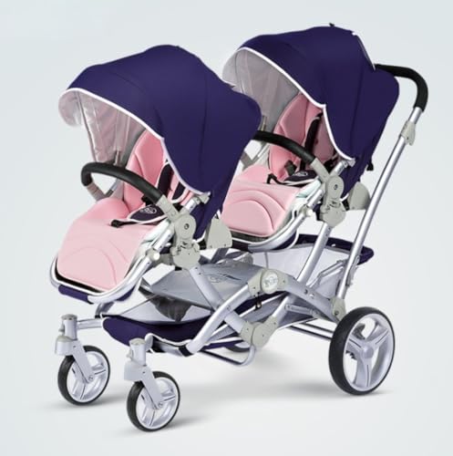 TIMDUの2人乗りベビーカーは、折りたたみ可能なキャリーワゴンです。屋根付きで運動会や幼稚園に最適。シルバーラックブルーのデザインで、楽に運べます。