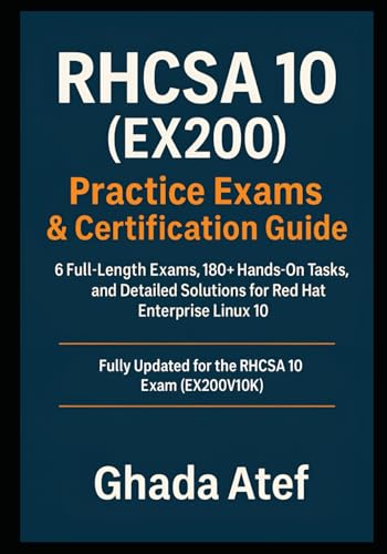 RHCSA 10 (EX200) Practice Exams & Certification Guideは、Red Hat Enterprise Linux 10の認定取得を目指すための完全な教材です。6つのフルレングス試験と180以上の実践タスク、詳細な解答が含まれています。