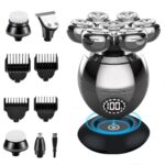 スキンヘッド用電動シェーバー。5in1機能、IPX7防水で乾湿両用。鼻毛カッター付き。Type-C充電、LEDディスプレイ。洗浄も簡単で、父や夫への贈り物に最適。