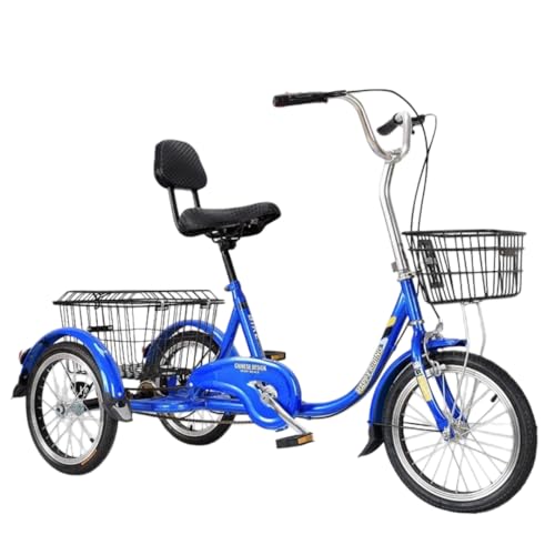 WGMの三輪自転車は、お年寄り向けで1速仕様。18インチのタイヤに、買い物かご付きで便利です。安全に移動できる設計で、レディース・メンズ両方に対応しています。カラーはブルーで、スタイリッシュなデザインです。
