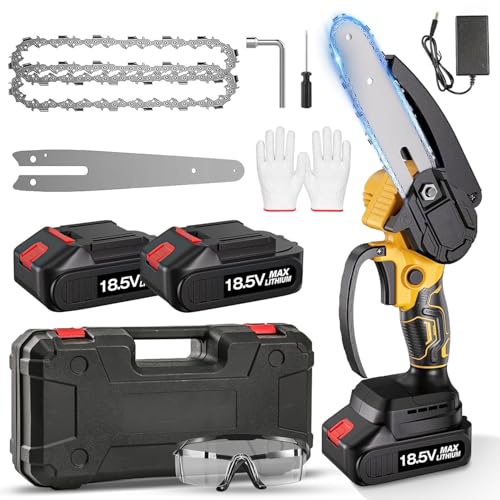 ZINQIA チェーンソー 充電式 電動ノコギリ【鈴木造園会社監修】残量表示 250000RPM/min コードレス ポータブル 4000mAhバッテリ一*2 強力ブラシレスモーター 軽量 片手で使う 充電式チェーンソー 防風ゴーグルと手袋が付属 木工切断/枝切り/庭木の剪定/竹を切る/園芸用品 日本語取扱説明書 オイル不要