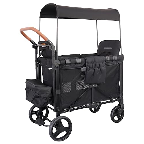 JoFistの二/四人乗りベビーカーは、折りたたみ可能で組み立て不要。保育園や運動会に最適。屋根付き・レインカバー付きで、快適に運べます。ブラックの2人掛けモデル。