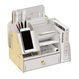 Bivoyud 木製デスクトップ携帯電話収納ボックスオフィス文具雑貨マルチコンパートメント収納ラックペンホルダー、デスクトップストレージ、アクセサリーラック、ペンホルダー、デスクトップラック、文具収納、木製、デスクトップ (ホワイト,大きい)
