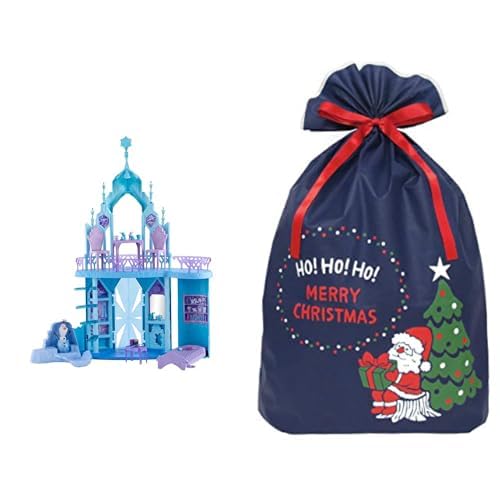 マテルの「エルサのおおきなこおりのおしろ」プレイセット。オラフのフィギュア付きで、ドールは別売り。3歳以上向け。クリスマスラッピング袋がセット。ごっこ遊びに最適!