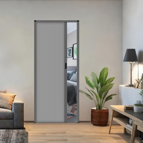 Rytgdxssの折りたたみアコーディンドアは、高齢者や車いすユーザー向けに設計され、軽量アルミフレームでスムーズな開閉が可能。省スペースで、幅120cm、高さ205cmの灰色フレーム。