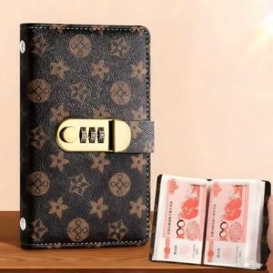 Wnicek 貯金箱 お札 お金仕分け 【50 ページ お札100枚収納】 貯金箱 札 貯金手帳 家計簿 予算封筒 システム手帳 お札封筒貯金 おしゃれ 貯金バインダー 家計管理 可愛い 大容量 ダイヤルロック付き 子供の貯金 貯札帳 (ダークブラウン)