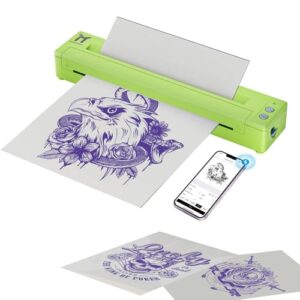 TATOPRT タトゥーステンシルプリンター P19 ワイヤレスサーマルタトゥー一時転写プリンター タトゥー用 2500mAh ポータブルタトゥーマシンキット 携帯電話/タブレット/PCに対応 グリーン