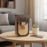 女性用携帯電話クロスボディバッグ。クロスボディストラップ付きのミニ電話財布で、通勤や社交イベントに最適なプリントショルダーバッグ。カラーはアプリコット。