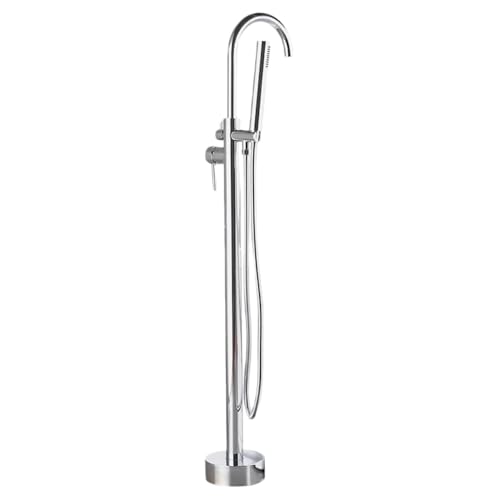 AOUMK浴室水栓は自立型で360度回転可能。温水・冷水に対応し、シャワー付き。浴室、トイレ、洗面所に最適なシルバーのデザイン。
