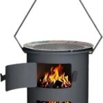 Lusonbinの家庭用焼却炉は炭素鋼製で耐熱性が高く、焼き網付きのポータブル薪ストーブです。バーベキューやキャンプに最適なコンロ。サイズは35x35x30cm、色はブラック。