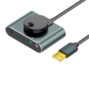 USBサウンドカードは、ボリュームコントロール付きの3.5mmアダプターで、PCやラップトップ、デスクトップに対応。ヘッドセット用の外部サウンドカードとして便利です。