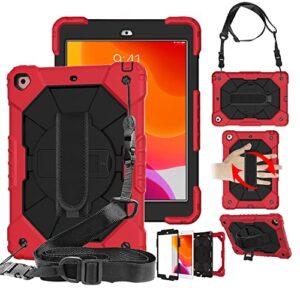 2021モデルiPad 9ケースiPad 10.2 第9世代/ 第8世代/第7世代(2021/2020/2019) 調節可能ハンドストラップと肩掛けー付き携帯便利 多機能タブレットPCケース【MYH】アイパッド10.2インチ2021/2020/2019 360度回転の折り畳スタンド Apple Pencil収納 戸外 持ち歩け楽 摩擦防止 耐震 キズ防止 安心感子供ケース対応機種:iPad 10.2第9世代2021/iPad 10.2第8世代2020/iPad 10.2第7世代2019(レッド&ブラック)