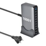高出力1000ワットのUSB-C充電ハブ。10ポート対応で、電話、タブレット、ラップトップの充電に最適。旅行に便利なコンパクト設計。