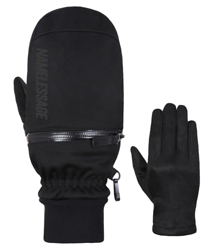 ネームレスエイジのスノーボードミトン(AGE-312M)は、ハイポラHIPORA素材とファスナー付き。ブラック2のMサイズで、手が出るハンドアウト設計。ロングタイプのスノーグローブは、スノボやスキーに最適です。