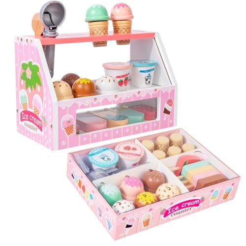 Barinoのアイスクリームショップは、おままごとやごっこ遊びに最適な木製玩具です。洋食レストラン気分を楽しめ、男女問わず人気の知育ギフト。誕生日プレゼントにもおすすめ!ピンクの可愛いデザイン。