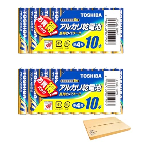 東芝製アルカリ乾電池単4形10本パック(LRO3L)は、高いエネルギー効率と長寿命が特長です。家庭用電子機器やおもちゃなど、さまざまな用途に最適。2個セットで便利に使えます。