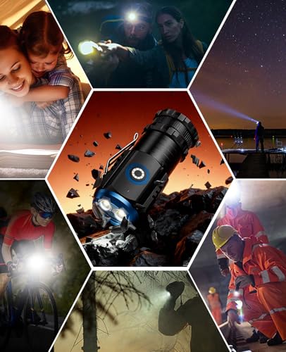 強力な懐中電灯、超高輝度2500lmで6モード調光。Type-C充電式、尾部磁吸、クリップ付き。アルミ合金製でIPX6防水、耐衝撃。最大照射距離500m、作業や防災、登山に最適。