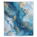 ブルーゴールドのテクスチャペイントタペストリー。背景布や装飾布として多用途、イラストアートや油絵デザイン。サイズは130×150cmで、リビングやベッドルームに最適。おしゃれな模様替えに。