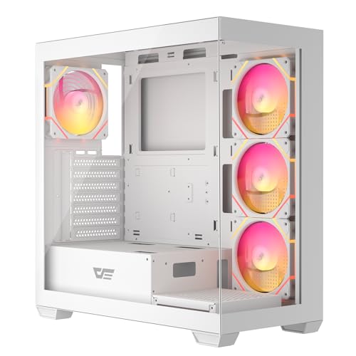 darkFlash DS900 ATXミッドタワーケースは、デュアル強化ガラスデザイン、非RGB PWMファン、タイプCポートを備え、360mmラジエーターをサポートするホワイトモデルです。