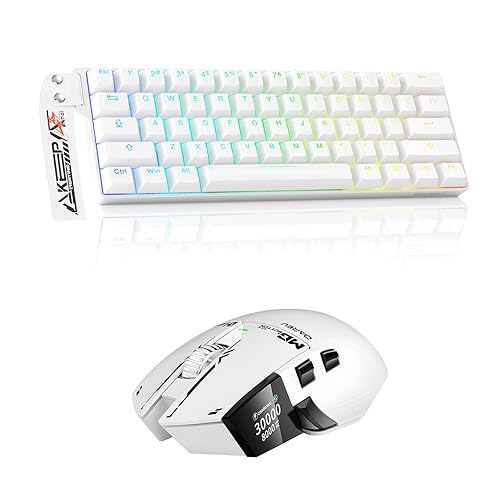 DAREU EK60HEは0.01mmラピッドトリガー対応のゲーミングキーボード。DAREU A980 PRO MAXは有線8K/無線4K対応のゲーミングマウスでTFTスクリーン付き。両者とも白色デザイン。