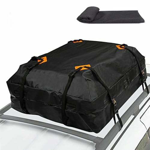 ATHULYAのルーフキャリアバッグは425Lの大容量で、防水オックスフォード布製。取付け簡単で、持ち運び便利。防雨・防雪・防風に対応し、滑り止めパッド付き。サイズは112*87*44cm。