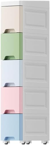 IWEJのキッチン隙間収納キャビネットは、幅25cm、5段でプラスチック引き出しを備えています。落下防止バックルとキャスター付きで、防塵設計。キッチン、洗面所、寝室に最適です。