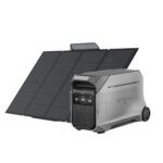 EcoFlow DELTA Pro3は4,096Whの大容量ポータブル電源で、定格3,600W・瞬間最大7,200Wの高出力ACを誇ります。11年の長寿命、6通りの充電方法、22%-23%の高変換効率のソーラーパネル付き。防水防塵で家庭用蓄電にも最適。
