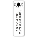 サインプレートは、ワイヤレスチャイム用のタテ型で、両面テープ付きのホワイト色アクリル製です。サイズは10x3cmで、貼るだけの簡単設置。耐水性があり、玄関や郵便ポストに最適なおしゃれなデザインです。