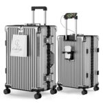 [ColoLife] スーツケース 機内持ち込み アルミ フレーム キャリーケース 耐衝撃 ストッパー付き 大容量 360度回転 キャスター キャリーバッグ USBポート TSAロック搭載 カップホルダー付き 隠しフック機能 携帯スタンド 乾湿分離収納袋 静音ダブルキャスター 多機能 キャリー ケース 便利グッズ 出張 ビジネス 旅行 (グレー, M (50L/3-6泊)) 高価買取中