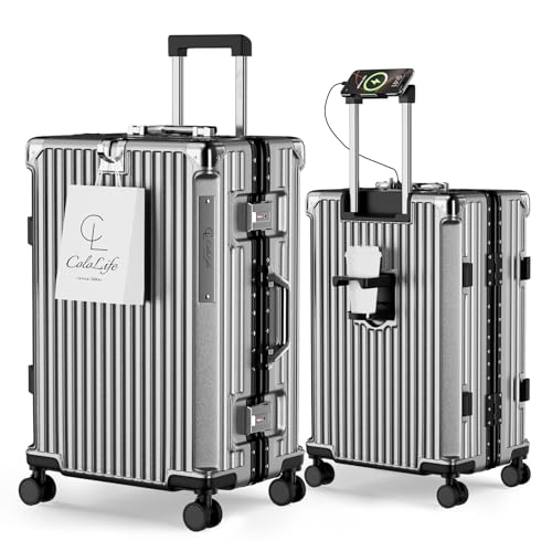[ColoLife] スーツケース 機内持ち込み アルミ フレーム キャリーケース 耐衝撃 ストッパー付き 大容量 360度回転 キャスター キャリーバッグ USBポート TSAロック搭載 カップホルダー付き 隠しフック機能 携帯スタンド 乾湿分離収納袋 静音ダブルキャスター 多機能 キャリー ケース 便利グッズ 出張 ビジネス 旅行 (グレー, M (50L/3-6泊))の製品情報
