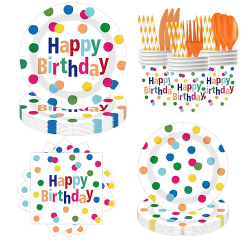 2026年誕生日グッズの使い捨て食器セット。10人分の紙皿が90点入り。誕生日、ホリデー、ホームパーティーやウェディング、ピクニックに最適なドットデザインです。