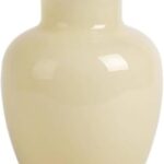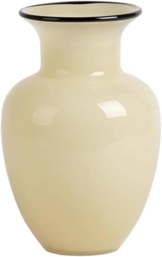 GOTRAFYのクリーム色と黄色のガラス花瓶は、手作り風のデザインで水耕栽培やフラワーアレンジメントに最適です。リビングの卓上装飾やショールームディスプレイにも使用できます。サイズは大きめのイエローです。