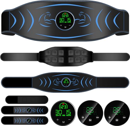 2026年モデルのEMS腹筋ベルトは、カロリー計数機能、3つのコントローラーを搭載。8/15種類のモード、強度は25/30段階で調整可能。12枚の伝導布と延長ベルト付き。USB充電式で、日本語説明書も完備。