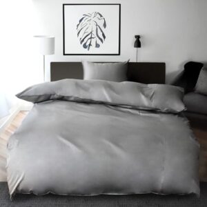 布団カバー クイーン 4点セット寝具カバーセット 綿混 無地 掛け布団カバー ボックスシーツ 枕カバー 洗い替え 速乾 防ダニ グレー