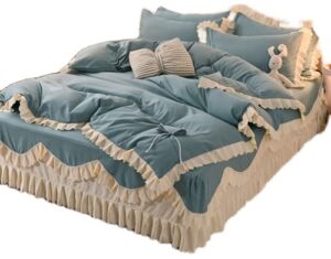 布団カバー 4点セット セミダブル シーツ 洋式 和式兼用 敷き布団 ベッド かわいい 掛け布団カバー 敷き布団カバー ベッドシーツ 枕カバー プリンセス 姫系 フリル ベットカバー おしゃれ 肌触り良い 寝具カバー 北欧 安心 快眠 (ライトブルー,A-1.5Mベッド)