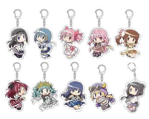 魔法少女まどかマギカのキーホルダーアクリル10点セット。萌えグッズで可愛く、カバン掛けや携帯ストラップとしても使用可能な装飾品です。並行輸入品。