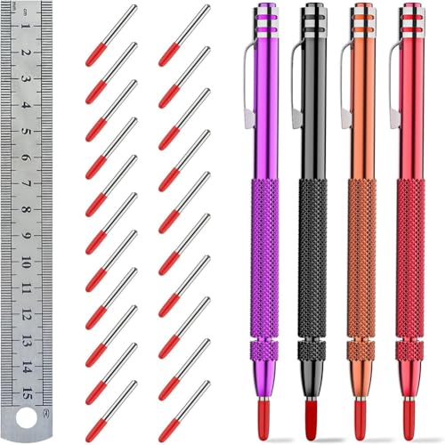 Ducevnaoe マグネット付きカラータングステンカーバイドスクライバー、定規、交換用マーチップ21個付き、ガラス/セラミック/金属用Aの製品情報