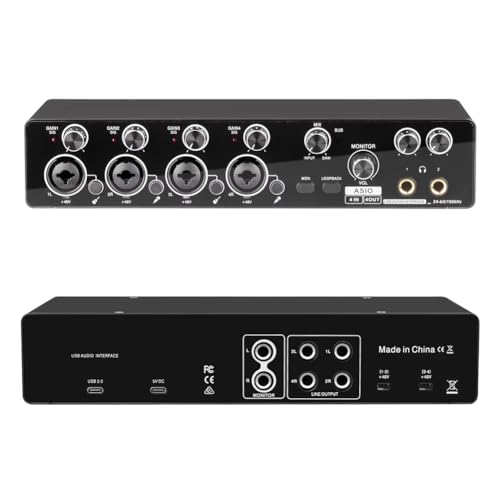 Kudjnfhyaプロフェッショナル4チャンネルUSBオーディオインターフェース。ASIOサポート、マイクプリアンプ搭載で、スタジオやライブレコーディングに最適。高音質を実現。