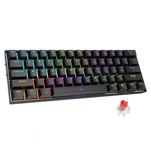 メカニカルゲーミングキーボード、テンキーレスデザイン、赤軸、Bluetooth 5.0/2.4G/USB-C接続、61キーの60%サイズ、22色バックライトカスタマイズ可能、ゲーム・オフィス両用、PC互換、Windows対応(ブラック)。