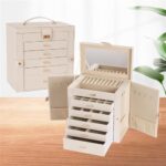 Heartsericeのジュエリーボックスは、大容量の6段引き出しで、ミラー付き。宝石やアクセサリーを整理できる便利な収納ケースです。コーヒー色とブラウンの美しいデザインが特徴です。