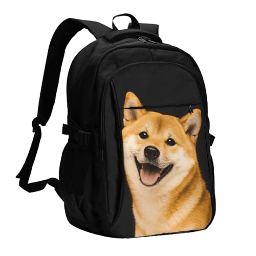 柴犬デザインのUSB充電ポート付きデイパック。男女兼用で大容量、防水仕様。PCバッグとしても最適で、通勤や旅行に便利なアイテムです。