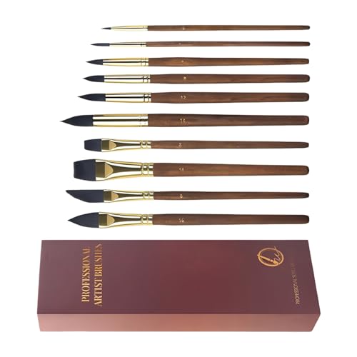 ポータブル合成毛ペイントブラシ10本セット。木製ハンドルで水彩画、スケッチ、絵画に最適。アート作品を引き立てる合金ブラシ付き。