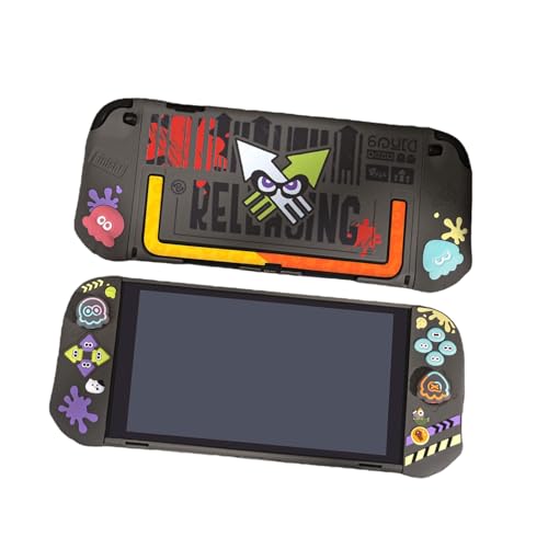 スプラトゥーン3 Switch 2用の保護カバーとスティックカバーのセット。分体式設計で着脱簡単。ドック対応、全面保護で超耐衝撃。指紋や傷を防止し、クリスマスプレゼントにも最適(黒いケースとスティックカバー付き)。