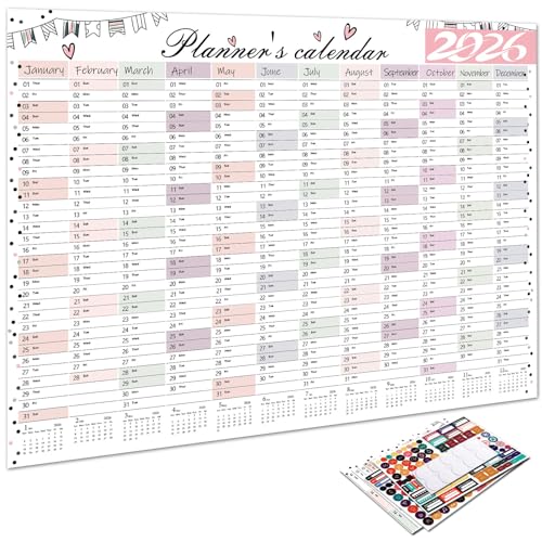 モダンな2026年用壁掛けプランナー、破れにくい紙を使用し、英語学習に最適。安全なインクでホームデコにもぴったり。年間計画が効率的にできます。