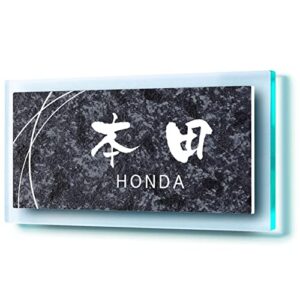 【166×86mm】表札 横長 ガラス風アクリル台付 【貼るだけ】【テープ付】 戸建 マンション プレート 玄関 門柱 宅配ボックス ポスト おしゃれ シンプル 会社 屋外 新築
