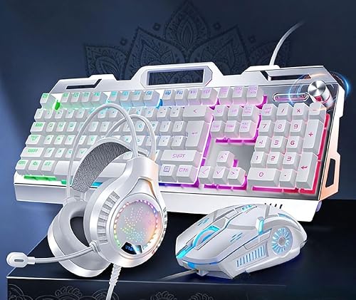 メカニカルゲーミングキーボードは、PC版イルミネーション対応で、輝度コントロールノブ付き。厚いメタルパネル採用、ホワイトミックスライト。キーボード、マウス、ヘッドセットのセット商品です。